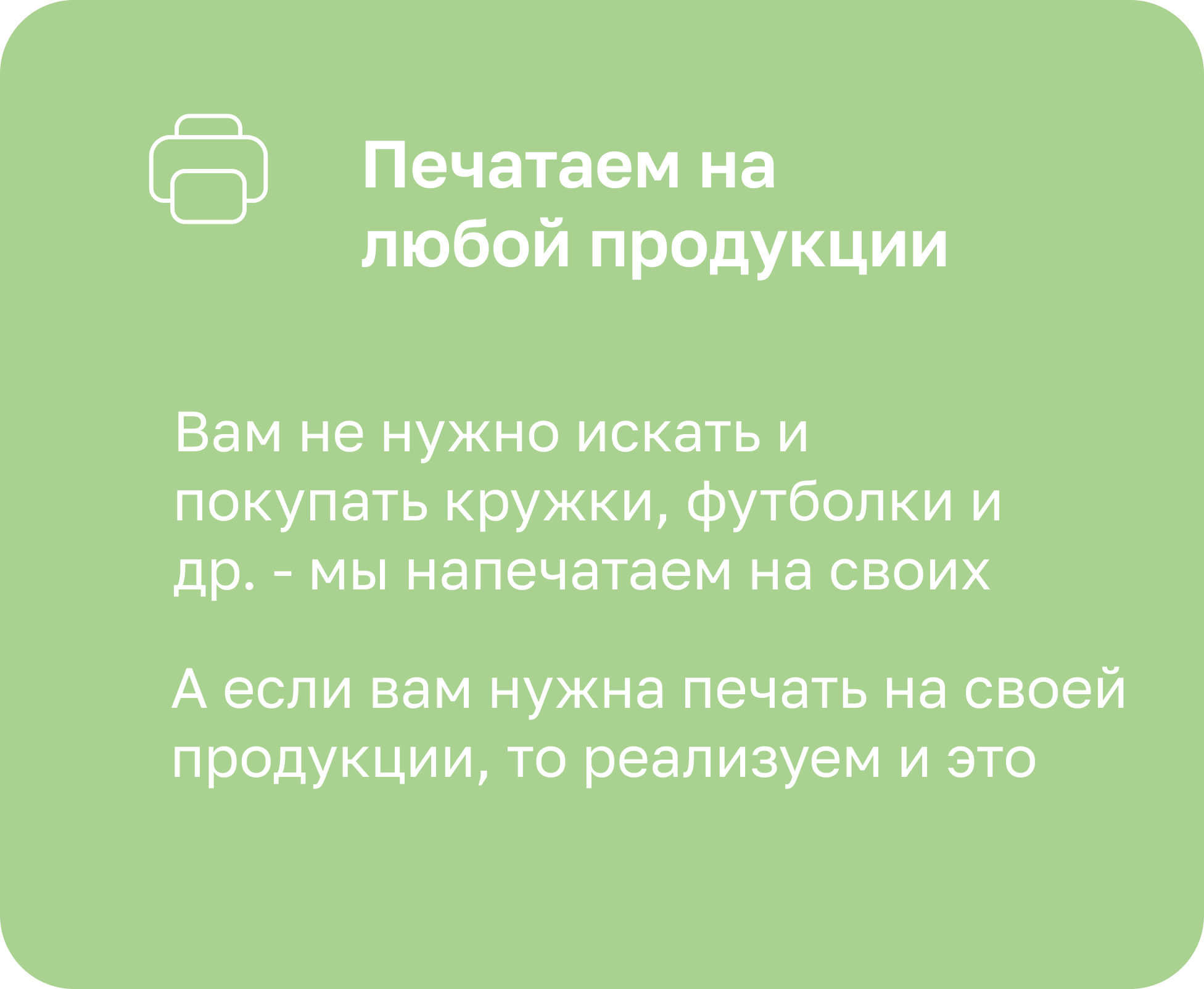 - Нанесение логотипов и надписей на корпоративную продукцию